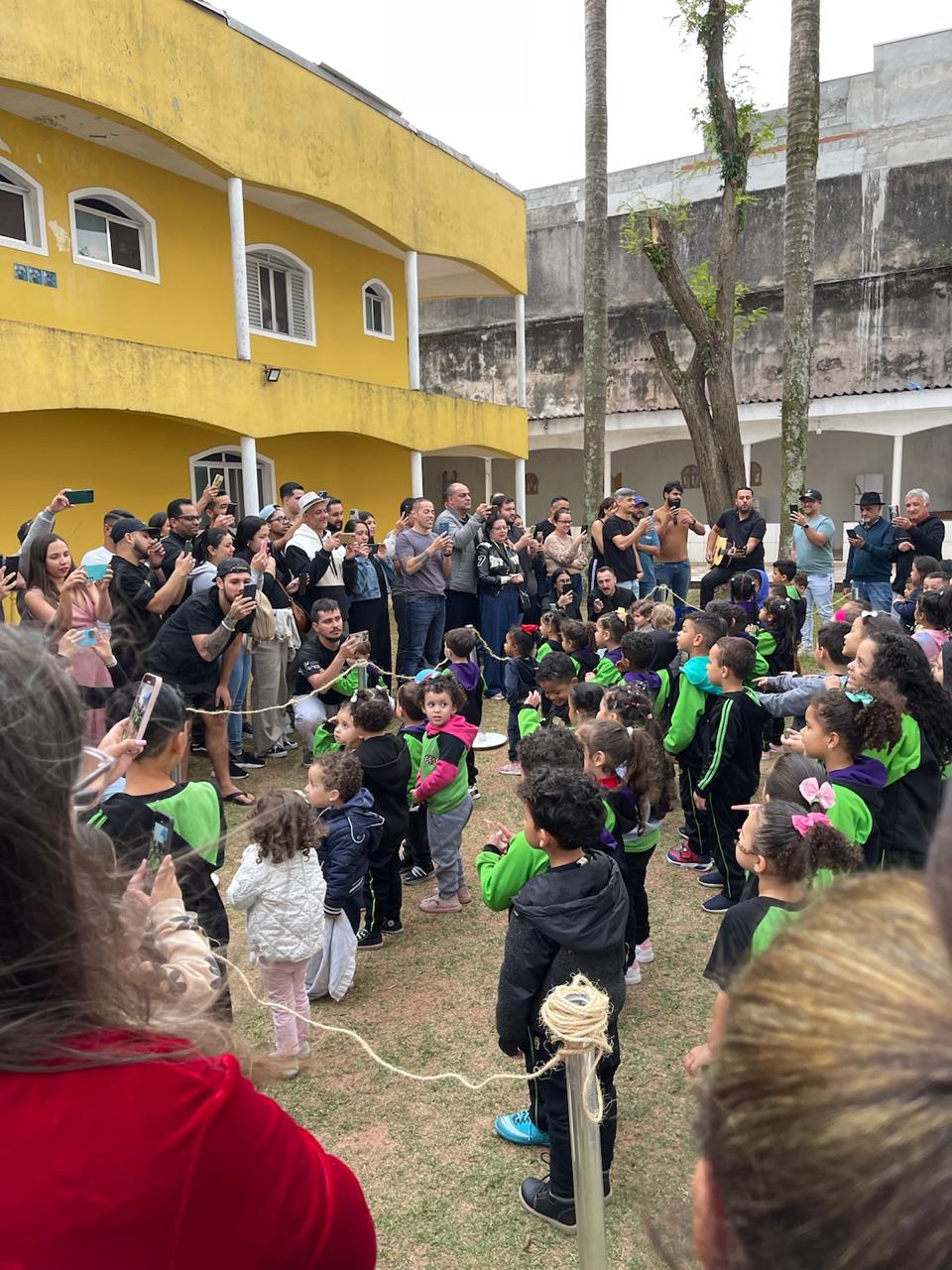 As crianças emocionaram a todos com uma canção que expressava, de forma doce e sincera, o desejo de seguir os passos do papai.